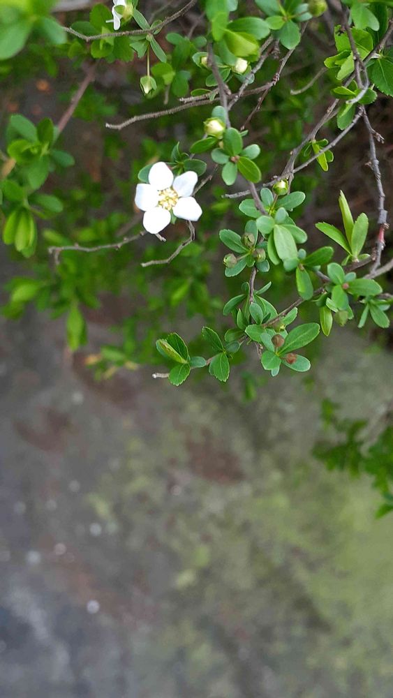 以前住んでた団地の生け垣にあったユキヤナギと咲き方が少し違って日当たりが悪いので少しずつ枝の先端に咲いてます😅