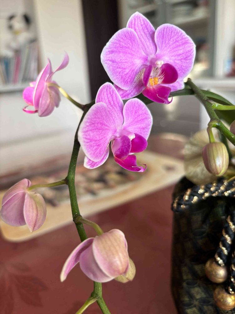 ミニ胡蝶蘭さん、お迎えして4年目!初めて茎がニョキニョキ伸びてきたときは大喜び💕😃でしたー😄