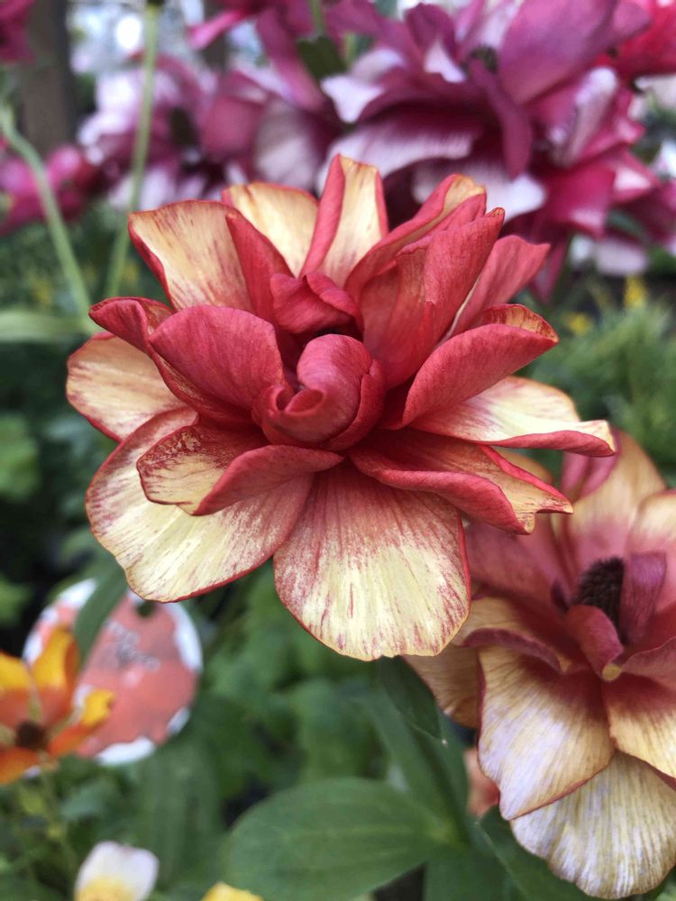 夕暮れ時、ホームセンターにて「ラナンキュラス ランドセルランドシリーズ」をパチリ!📸❤️🧡😄🌞✌️