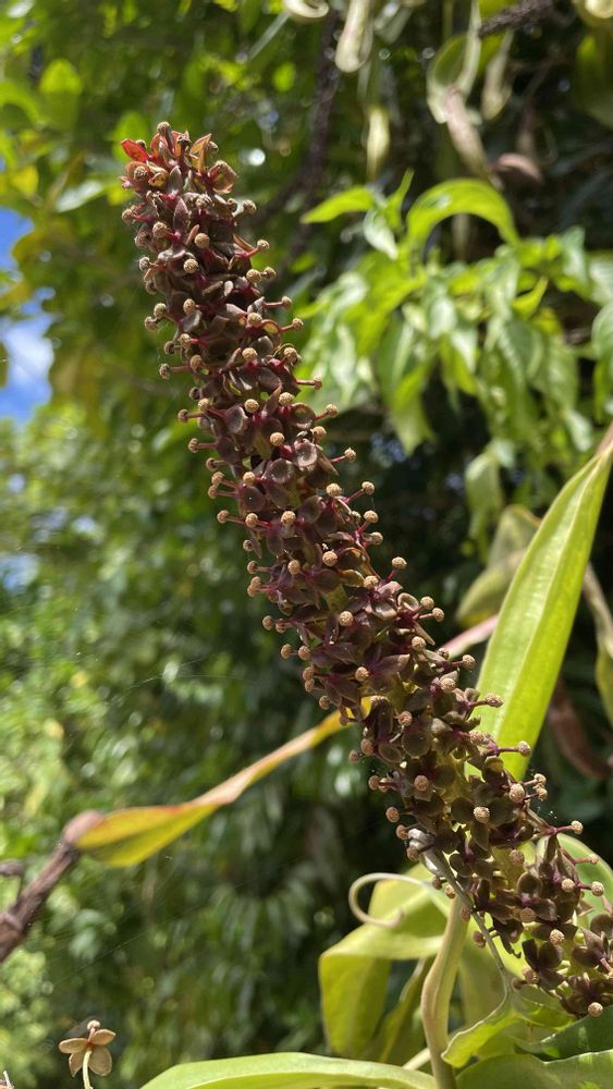 ウツボカズラの花は枯れてるのか、これから咲くのか、どっちでしょう。