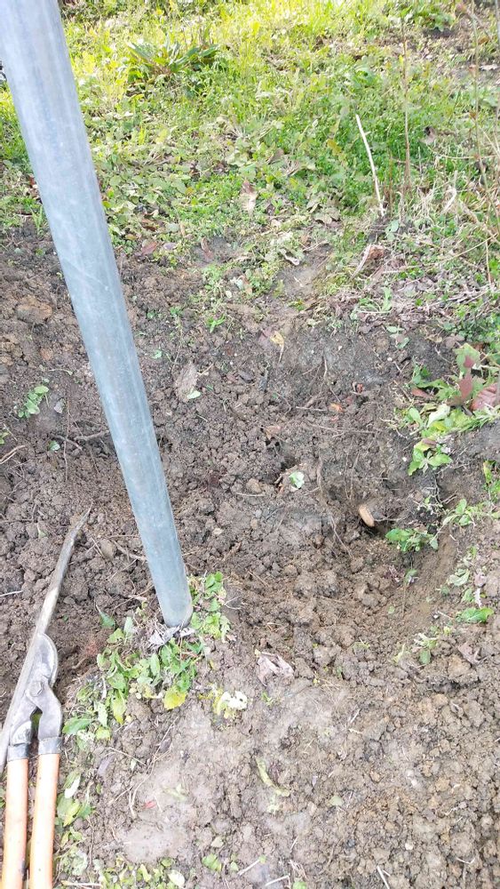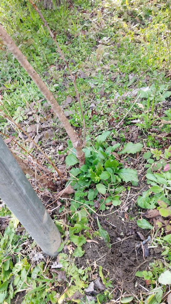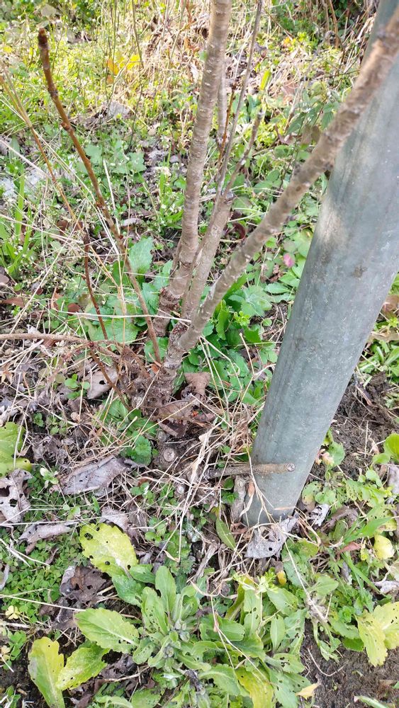 サクランボの根元から生えた枝を掘り上げる。捨てるより苗木で育てた方がサクランボが育てば嬉しい😆ラッキー