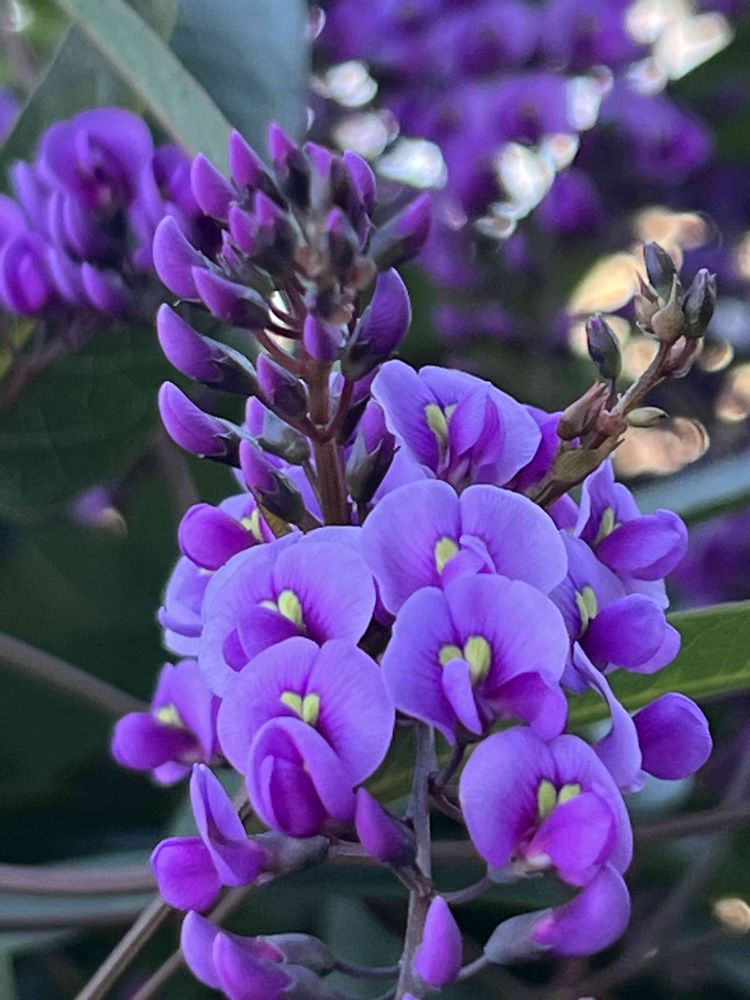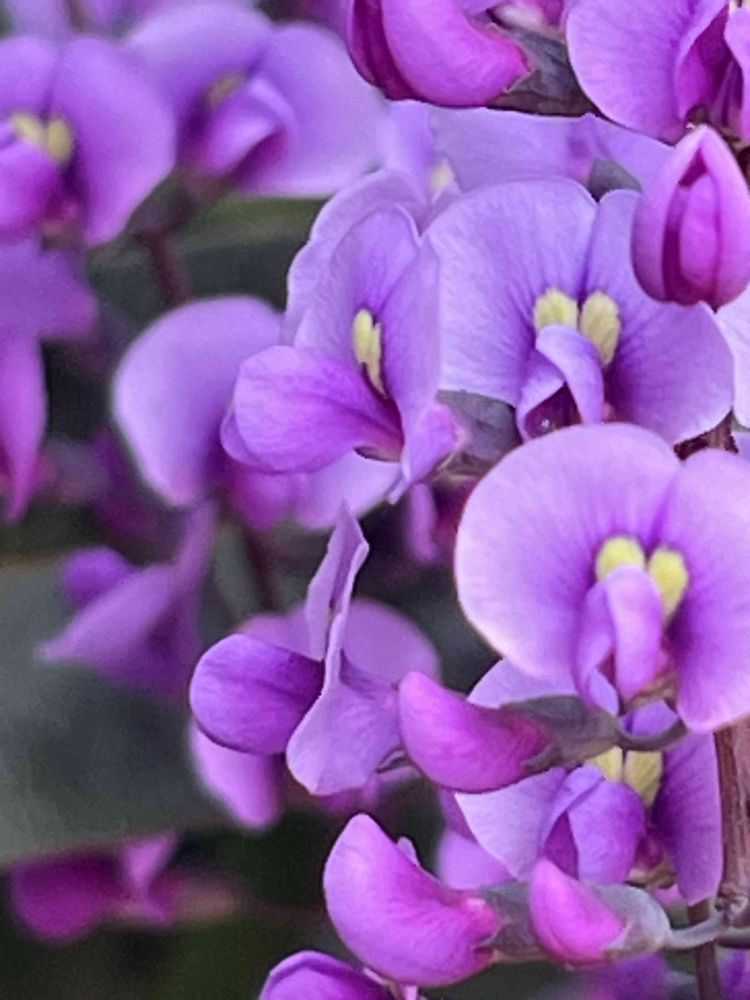 素敵な紫💜のハーデンベルギアが咲いて来たね〜我が家のちょっと薄紫ピンクみたいなコなんよ〜今年は咲きがイマイチなんやけど、、、これからヒヤシンスとペコちゃんとオソロ投稿の為にハーデンベルギア撮ってこよう〜🤭💜💕✨