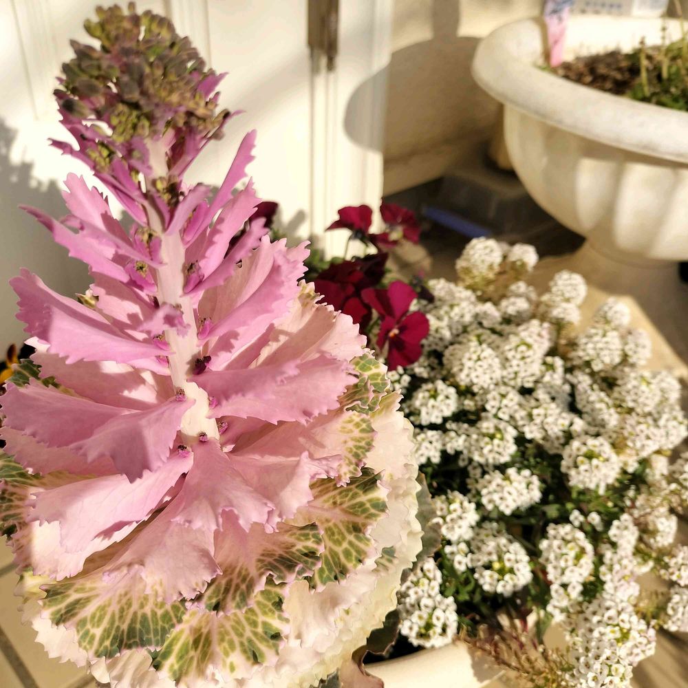葉牡丹は、花が咲きそうですね😉‼️