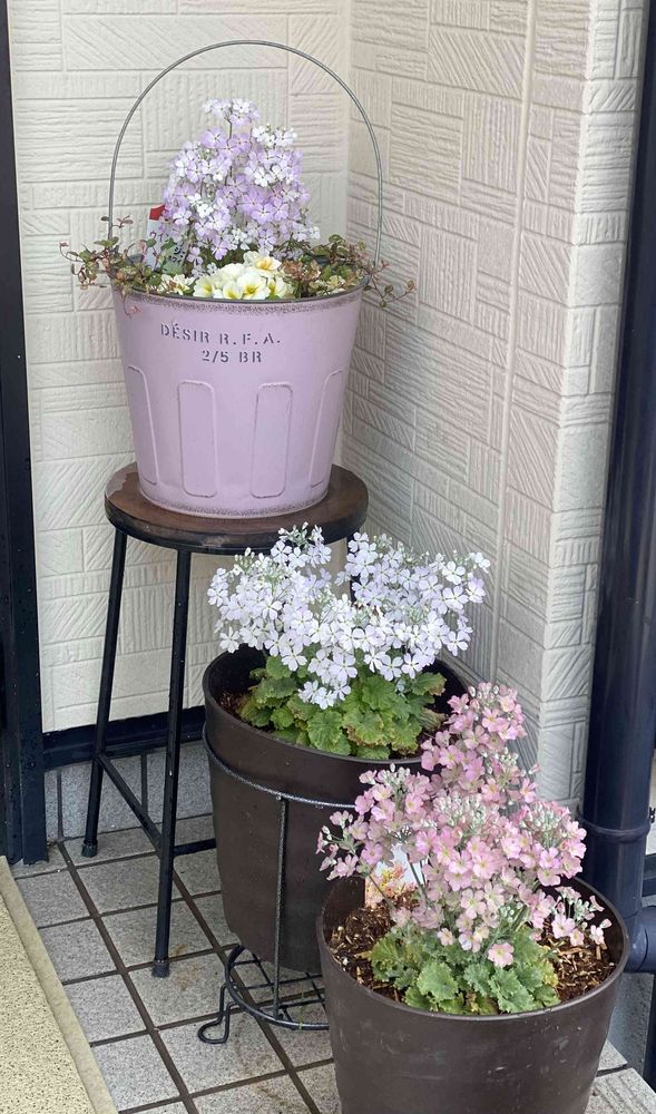 集合させて見たら 寄せ植えのさくら 単品植えのさくら 育てた場所でこんに色の出かたが違うんだなぁ〜と実感しました🧐