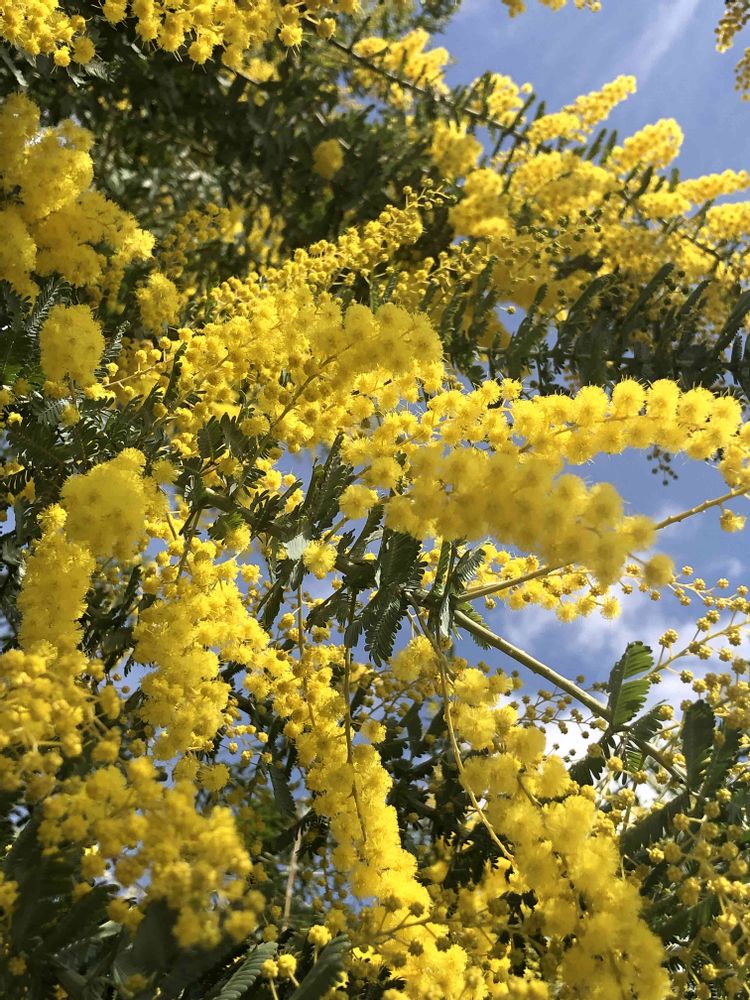 お友達の庭のミモザはお花がたっぷりで、枝が重そうに垂れ下がっています😅