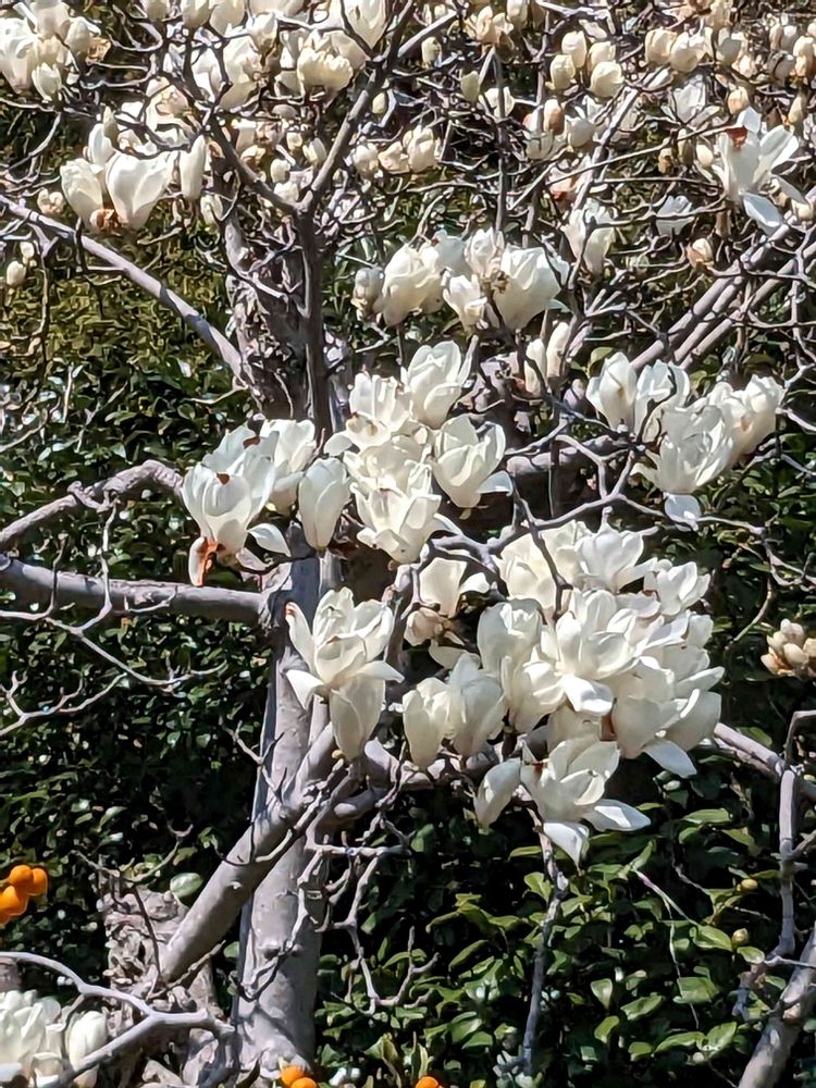 同じハクモクレンでも、早咲きさんね。🤍🤍🤍💚