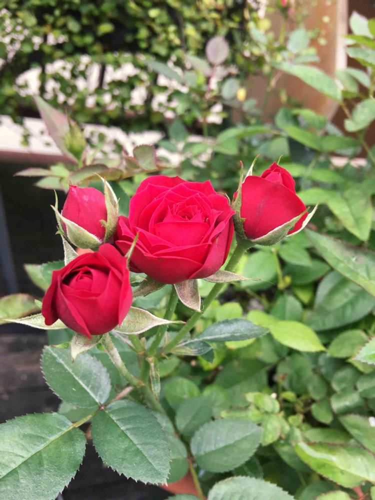 ウチのミニ薔薇、うどん粉病にかかりながら花を咲かせてます。蕾も付けず枯れそうな子も😢
