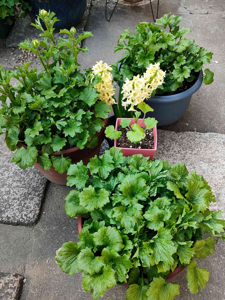 3枚目はラナンキュラス4鉢とヒヤシンスの様子☺️