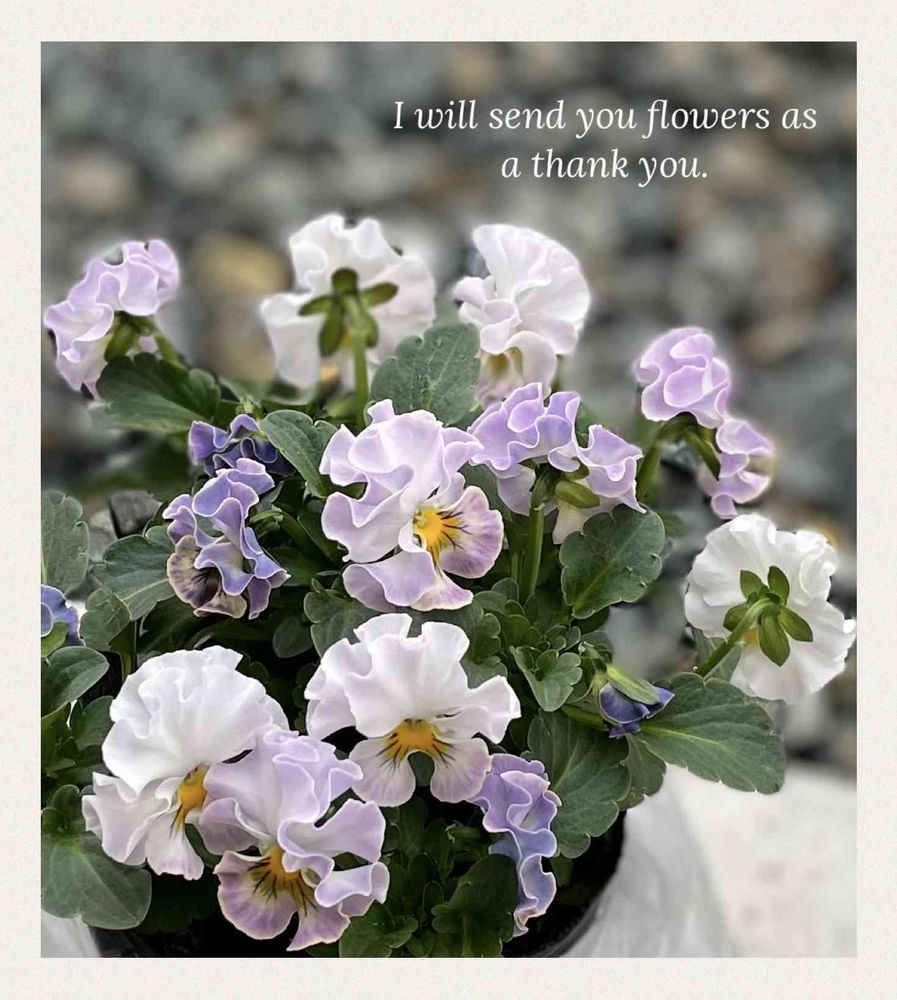 お名前の付いたビオラ、なかなか買えないんですけど、お礼にあげるのはお菓子も良いですがお花も良いかなと🩷