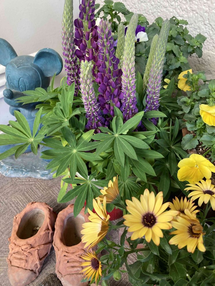 ルピナスは大きくなるイメージがあるのでこんな感じで玄関先に飾れるのはいいですね😆💜🩷🩵