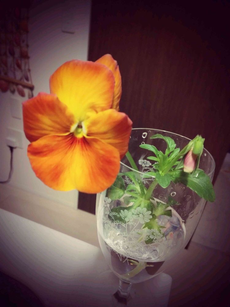 素敵なグラス🍷にさり気なくパンジー🧡