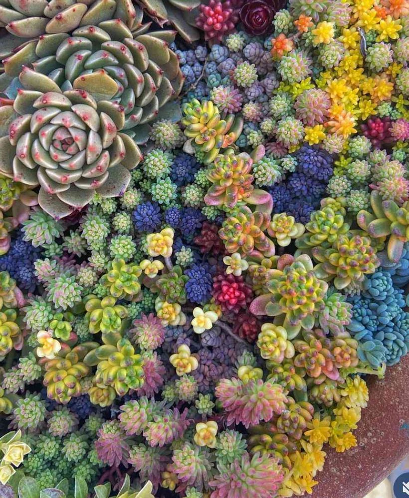 ➂インスタで、こんなカラフルなセダムをみました。カラー操作して無くてこんなの?