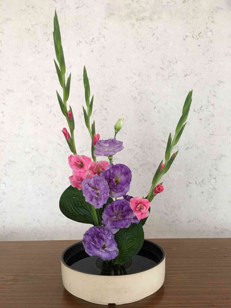 今回のお稽古🌼は、未生流の基本形、色彩盛花、体用型B。