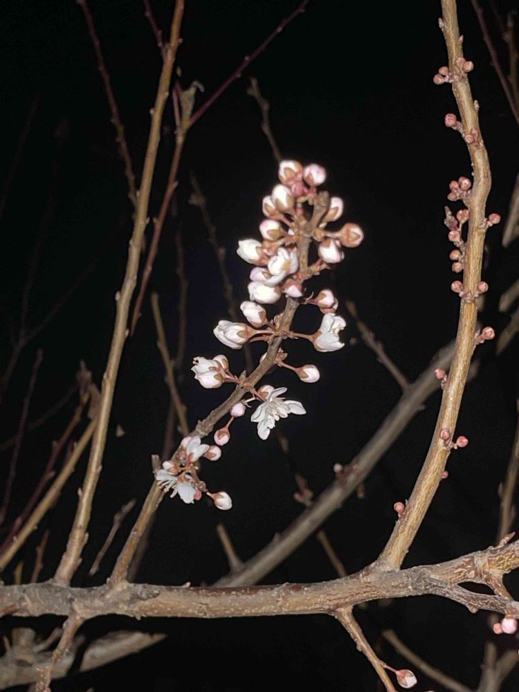 前2回投稿の枝とは違う、も少し高いところの細めの枝が一番に咲いてくれています♪