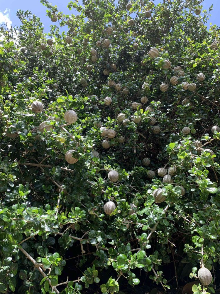 地面近くまで沢山成っている実は、ソフトボール位の大きさ🥎
