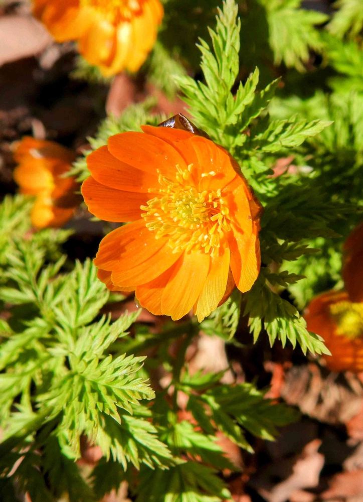 オレンジ色のフクジュソウ・秩父紅の花が綺麗です🧡🌿