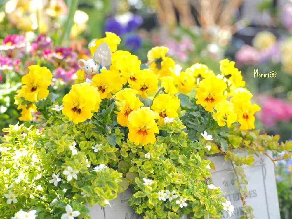 🌿バコパさんライムグリーンで斑入りなのね♡ 黄色のビオラさんと💛
