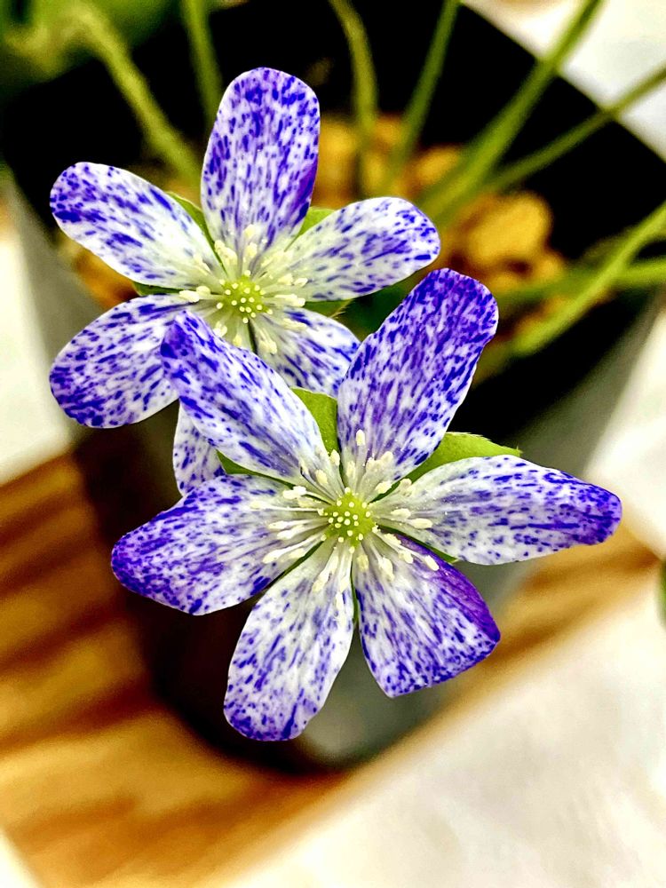 展示会で見る雪割草は原種に交配して生まれたお花が多いので、初めて見るタイプばかりですよ👀💖シンプルな雪割草も美しいですが、いろんな咲き方をしている雪割草は芸術品みたいです🤭♡♡♡