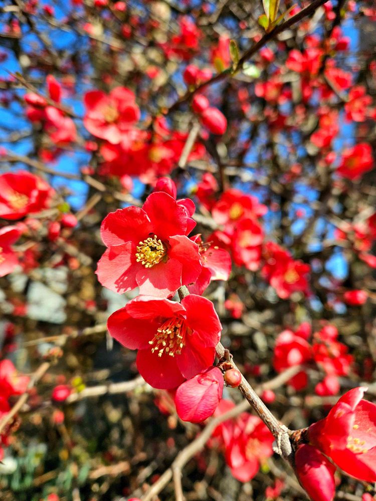 ボケの赤が綺麗ですね。