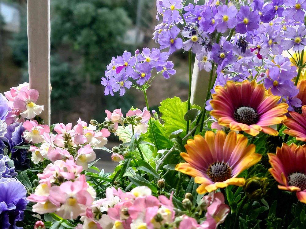 寄せ植えにしたネメシア、プリムラマラコイデスと花盛りを迎えてます。