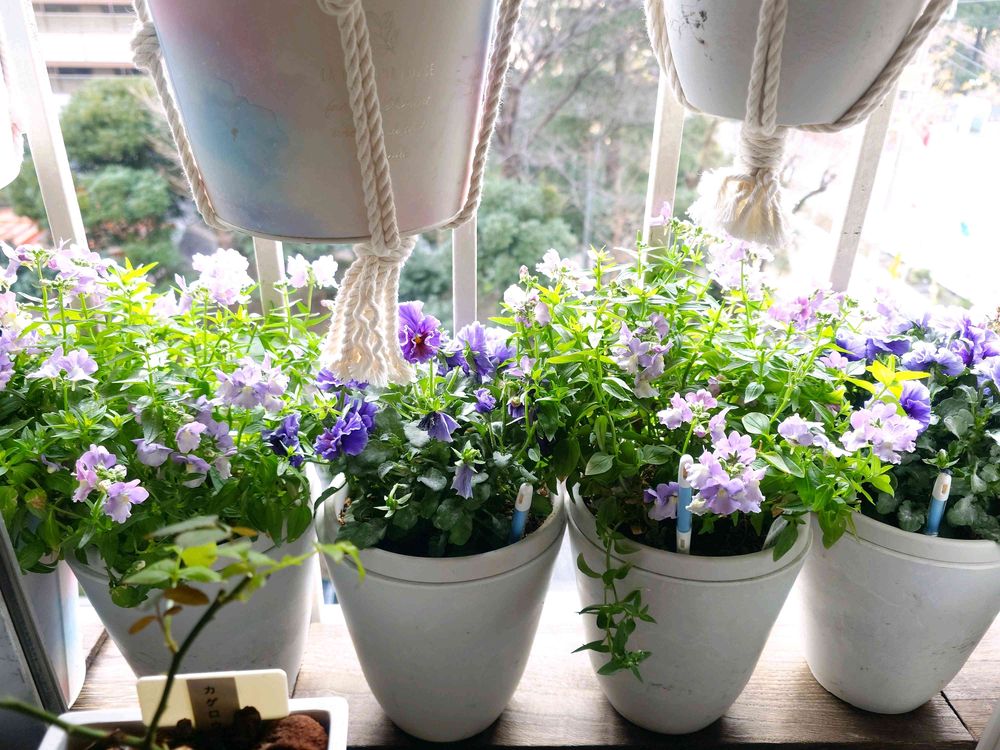パンジークレールドゥリュンヌ&ビオラアクアレールもまだ頑張ってるけど、お気に入りのアントワネットがうどんこ病であっという間に꒰ঌ 死滅໒꒱しました🥺