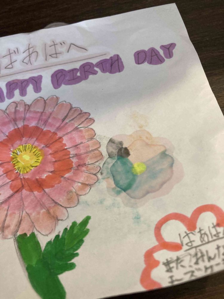 お誕生日おめでとうございます いくつになってもプレゼント🎁は嬉しいですね お花好きの人にとってはお花が一番かなぁ お孫ちゃんも優しくいつも素敵なバースデーカード、手作りのケーキ🍰