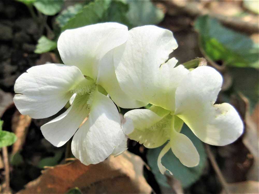 野草園に咲いていた真っ白なスミレ 葉は丸葉