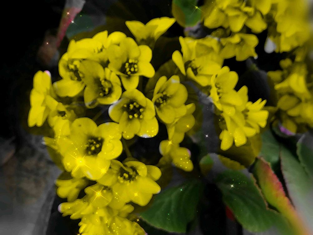 ヒマラヤユキノシタはどピンクですけど、イエローの日なんで、黄色く加工してみたら、それっぽく出来てしまったのでw