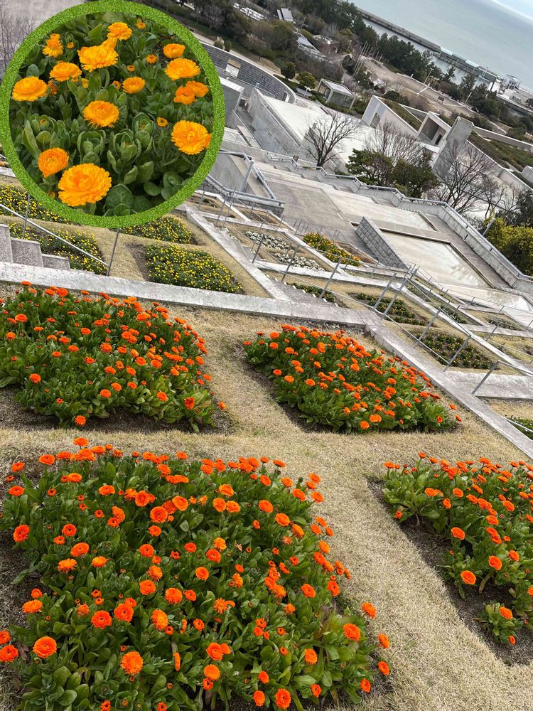 この大花壇は🌼山の斜面に沿って4.5✕4.5mの花壇が🌼階段状に100個集まってできている庭園で🌼