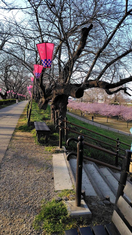 良くバスツァーに入ってる場所なんだけど、咲くとほんと綺麗😍長い一本道の土手に両側から咲くから、桜のトンネル~