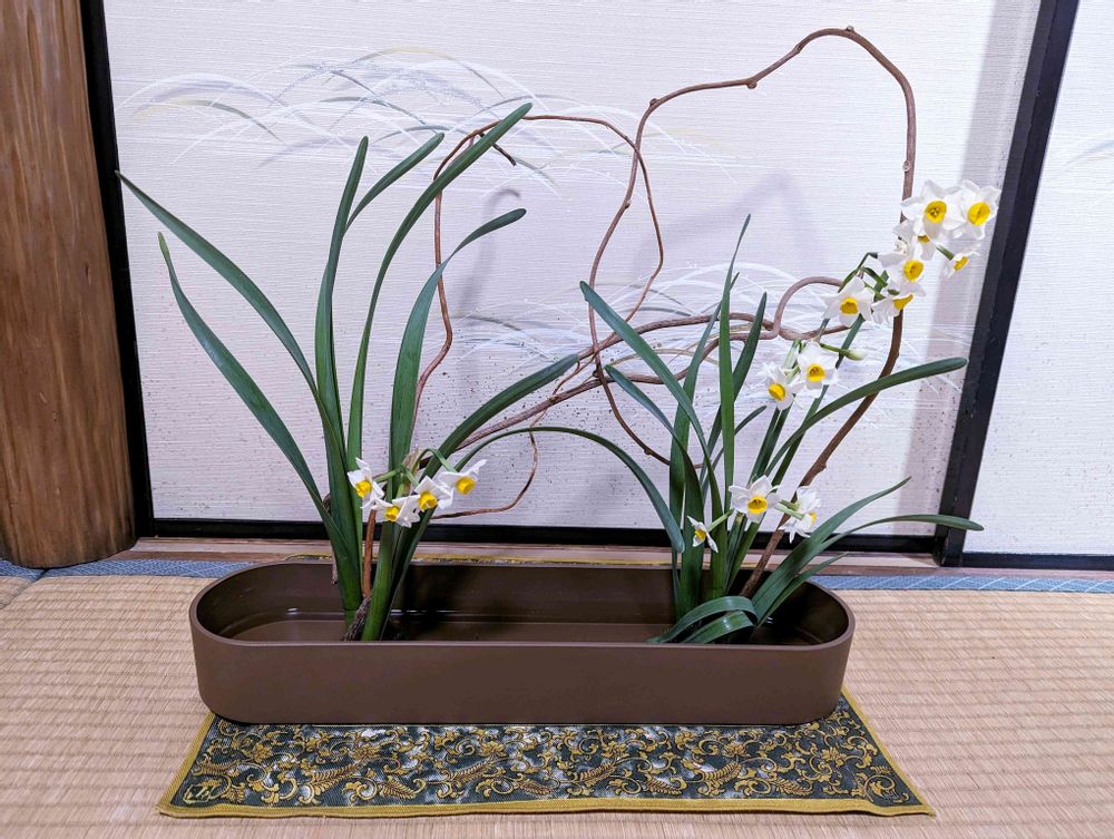 水仙の古来からの生け方は年に一度学びますが、毎年忘れている気がします💦