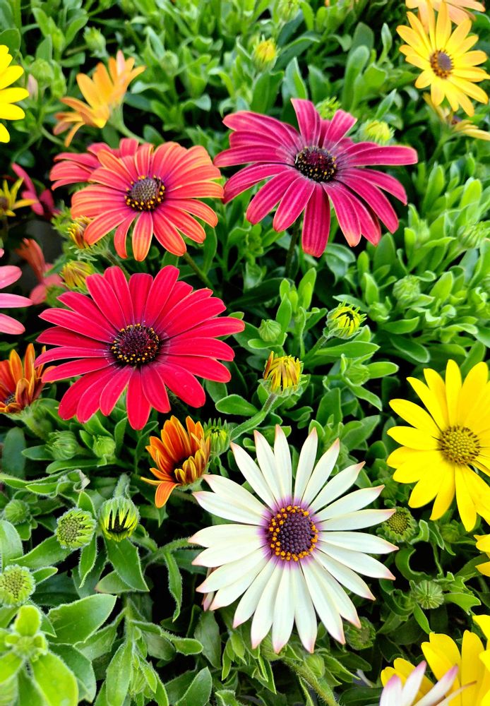 きれいな色とりどりのオステオスペルマムが 日差しを浴びて咲いていました🪷