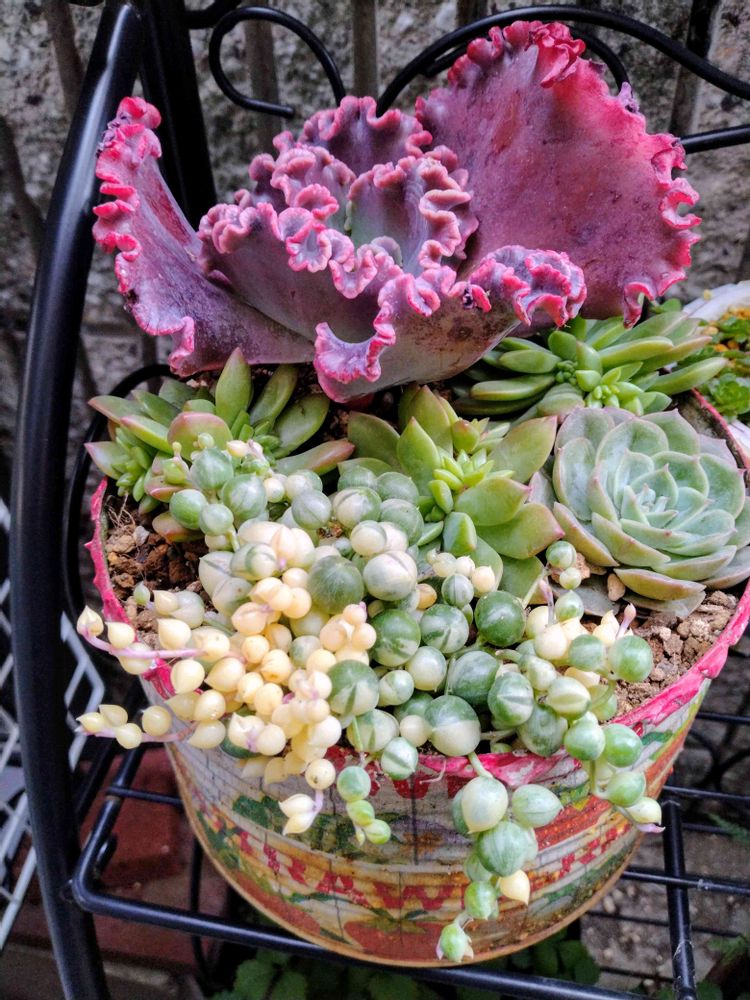 部屋の中で、仕立て直ししたけど、私の寄植えは、センスのない(寄せ集め植え)だよ(笑笑)