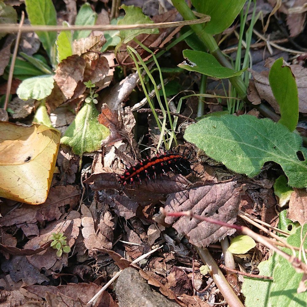 1枚目のスミレの近くにいました。見た目はすごいけどツマグロヒョウモンという綺麗な蝶になるそうです。スミレを食してからさなぎとなるようです🦋✨