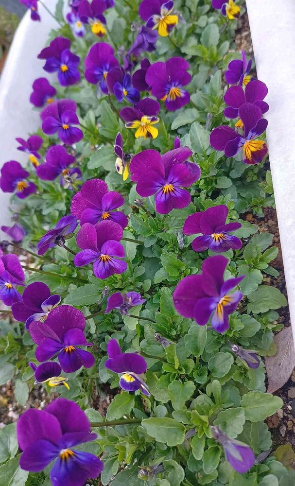 ビオラは冬の間にこぼれ種からの小さな🌱を摘んで並べました😁🤭😆