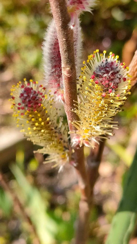 変身途中のピンクネコヤナギですね〜🌸🌼