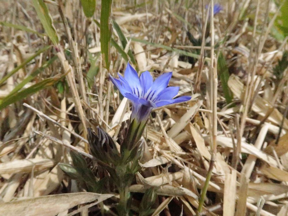 ハルリンドウが多く咲きだしています。蛇紋岩地帯の痩せ山の冬枯れの野原で咲いています。🌸🏵🤗🐶✌️