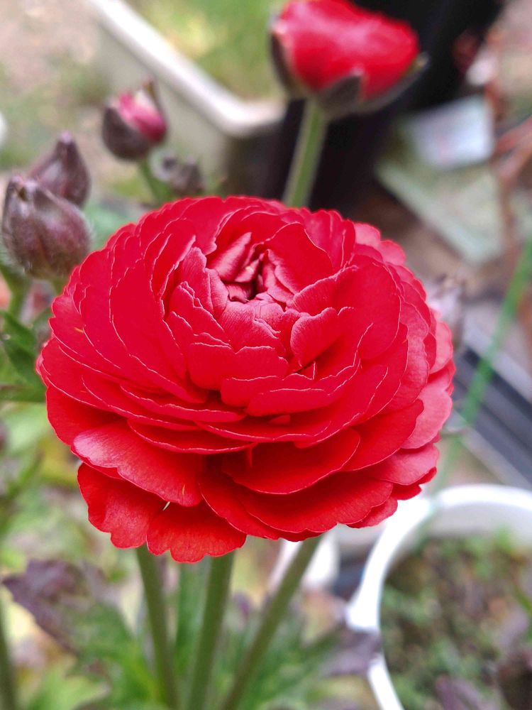 ラナンキュラス、おソロでしょうか。赤は、華やかですよねー~~