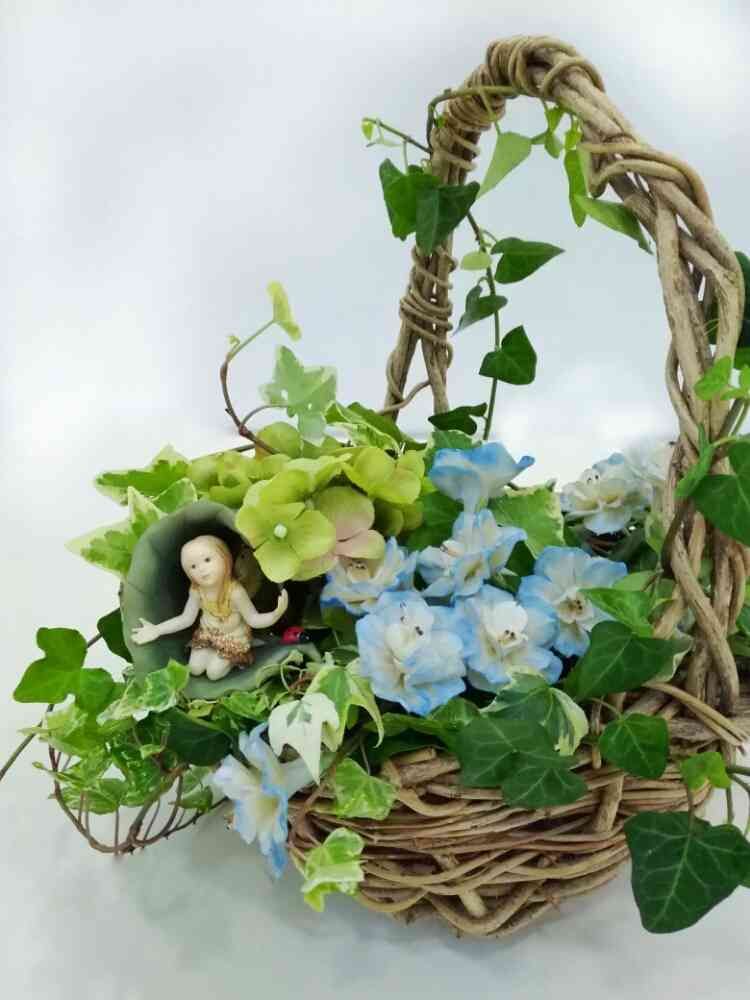 青のデルフィニウム(自作)と紫陽花はフェイクです。