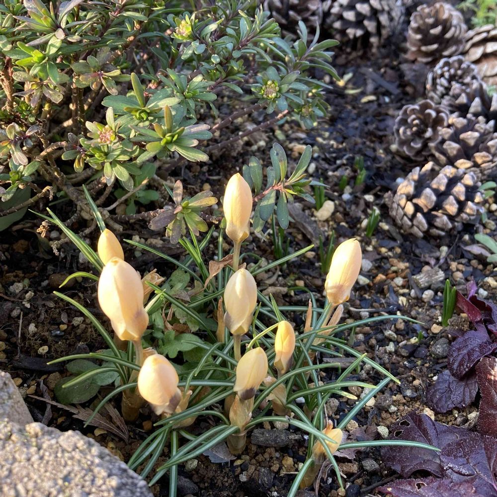 クロッカスは黄色というか優しいクリーム色でいい感じ✨閉じてる姿、可愛すぎる〜😆
