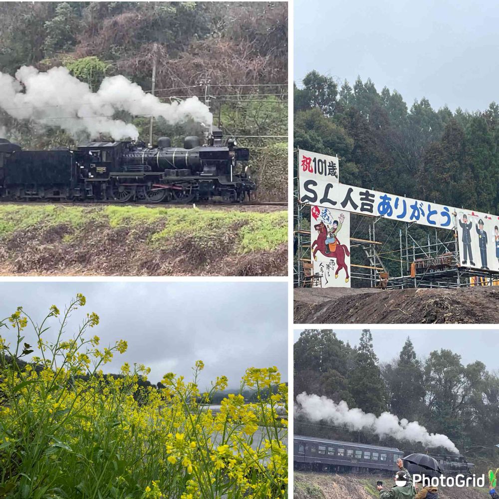 朝から雨です。今月末で引退するSL人吉をまた撮り鉄してきました☔️。地元の方々が特設の大きなパネルを作って見送っています。皆に愛されている🚂、老朽化で爆煙の姿は観れませんが、汽笛🎶と白い蒸気を機関士さんがサービスしてくれました(^^)/ ラストランまであと4回、また行きまーす!