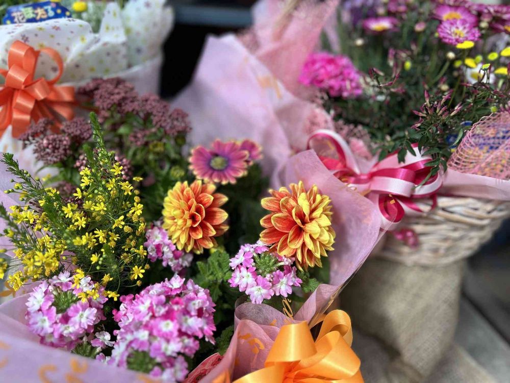 季節のフラワーバスケットがたくさんお店に並んでいます♪