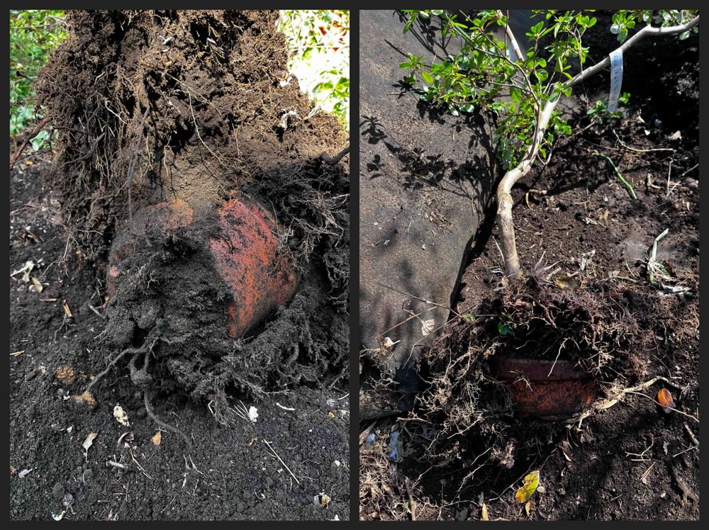4中央に取り残されたユキヤナギを移植しようとすると、盆栽だった事が判明。