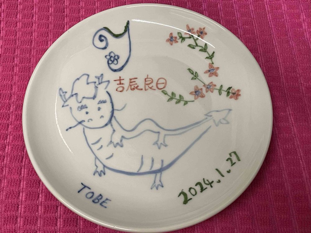 1/27 旦那の会社から愛媛にバス旅行🚌行ったときの絵付け体験(砥部焼(とべやき))😊の焼き上がったお皿。