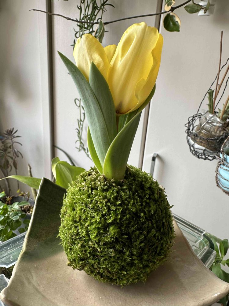 昨年12月に、ダイソーの🌷球根、オレンジ色とピンク色の2袋を衝動買いして、1月9日に苔玉仕立てにして有りました。