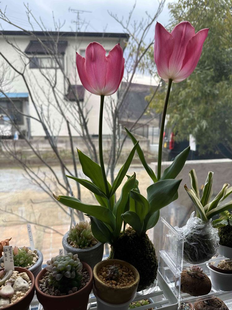 随分と成長して、花壇で咲く🌷と殆ど変わらぬサイズ!丈が27㎝に成りました‼️