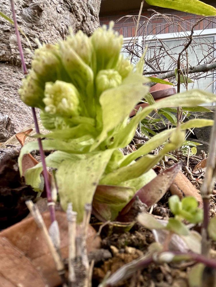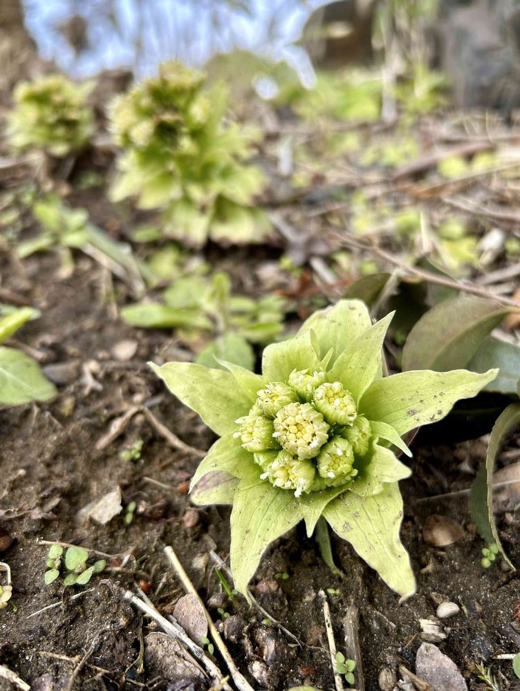今日の庭pic。拓殖の樹下のフキノトウ昨年より若干遅いかなぁ〜 pic3枚目のツバキもまだまだ蕾の状態ですね。