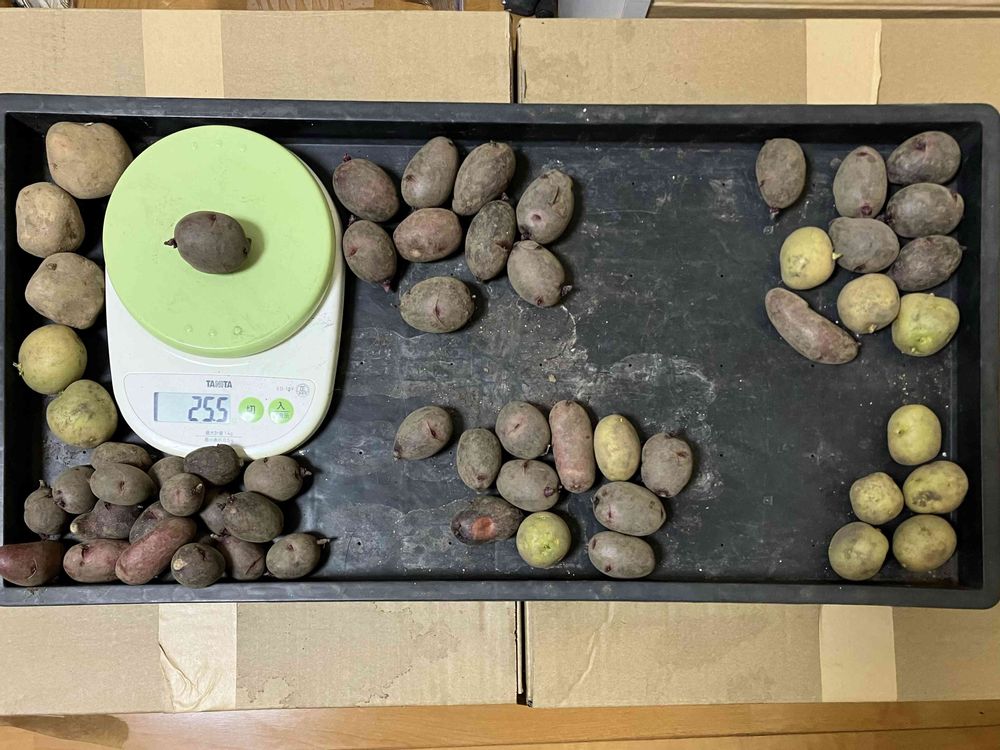 ②その中から、かろうじて種芋として使えそうな物を⚖️秤を使って分別