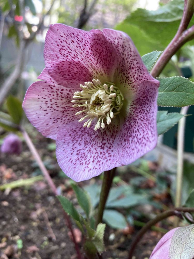 自然大好き派😘、兼園芸もやっています派です。クリスマスローズもどんどん咲き進んでいます。今は晩生の開花真っ最中です。これは我が家ではかなりの古参です。ソバカスが苦手な私に対してこれでもか!とソバカスを見せつけて来ます。元々は鉢植えだったのですが、ソバカス嫌いと植え替えの手間が気になり庭に下ろしました。普通は"憎まれ者世に憚る"で爆増しそうですが、何故かあまり増えず一株のままです。増えないので他の植物を圧迫することも無いので微妙な存在感を漂わせて毎年開花しています😅。