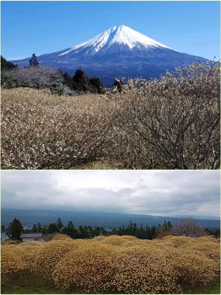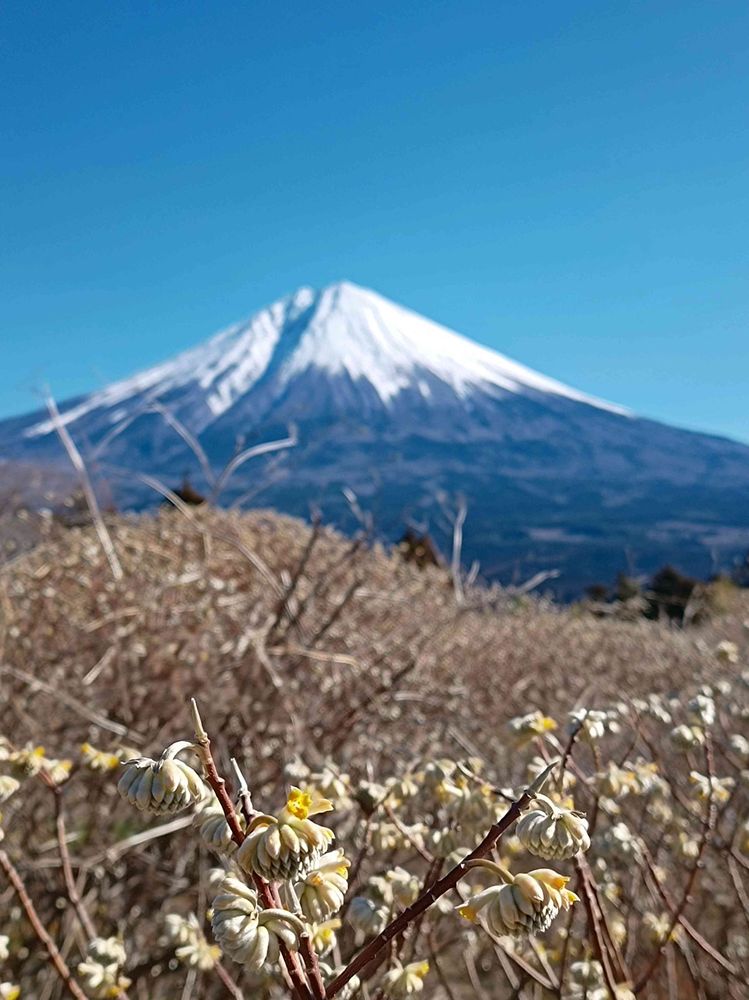 富士山をバックに、三椏のお花が綺麗ですね💛🌿🗻😍